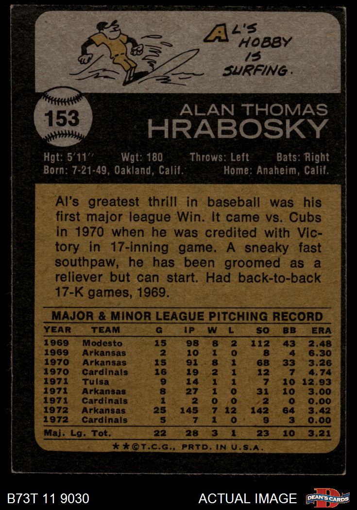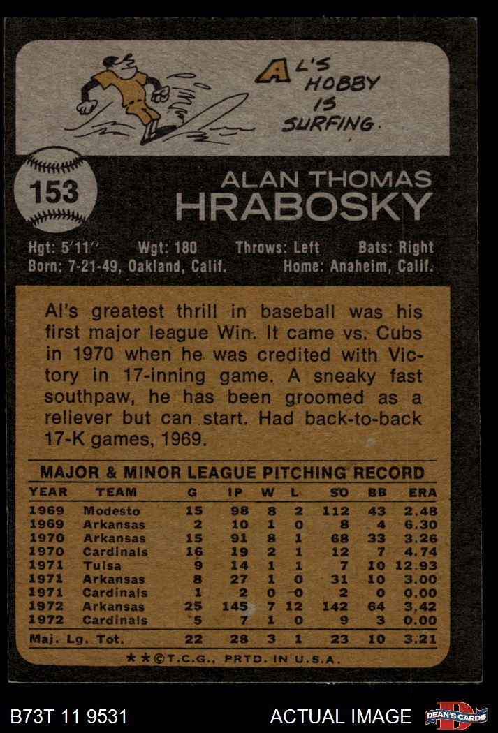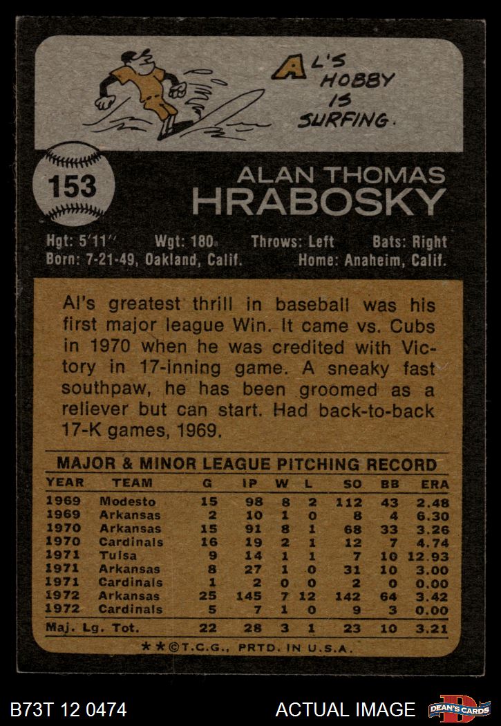 1973 Topps #153 Al Hrabosky 3 - VG
