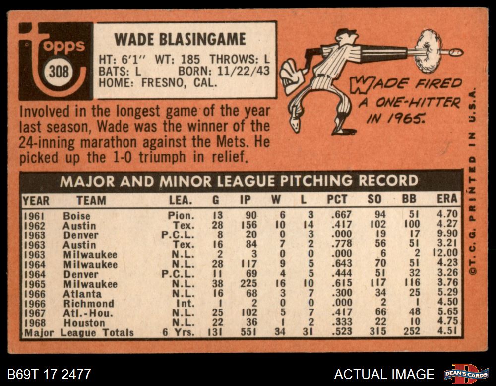 1969 Topps #308 Wade Blasingame 2 - GOOD
