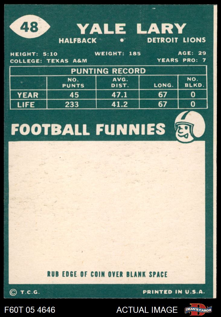 1960 Topps #48 Yale Lary 7 - NM