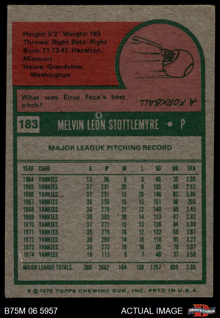 1975 Topps Mini #183 Mel Stottlemyre 5 - EX