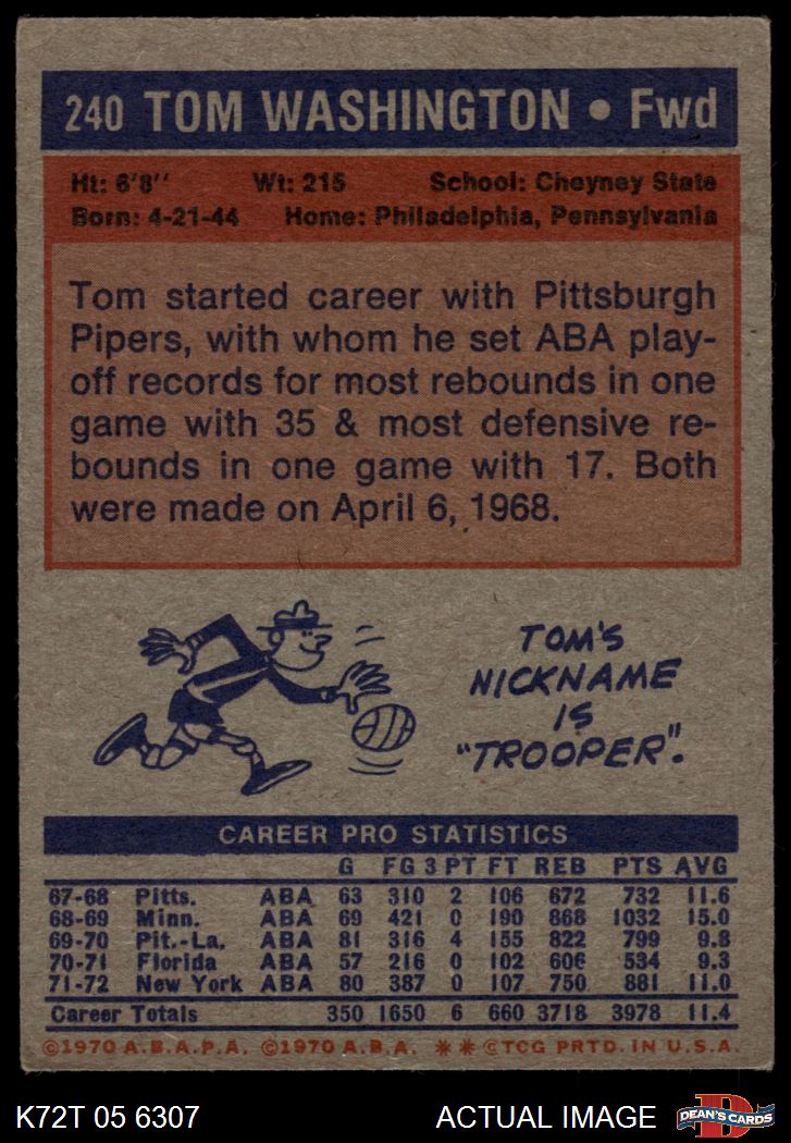 1972 Topps #240 Tom Washington 3 - VG