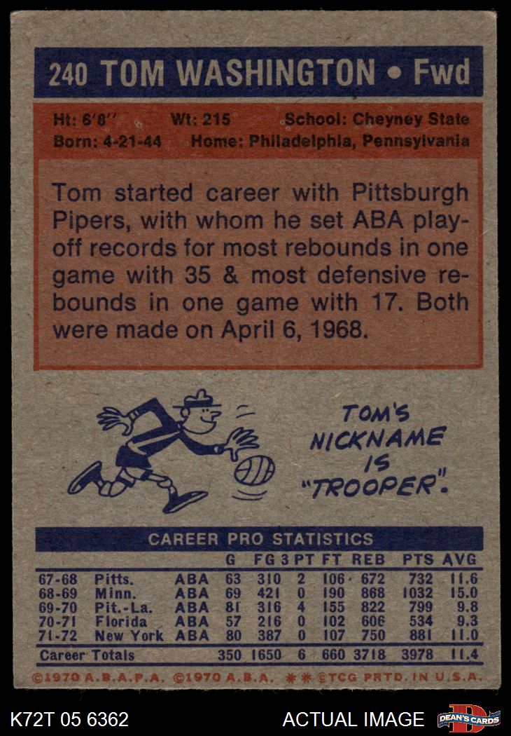 1972 Topps #240 Tom Washington 4 - VG/EX