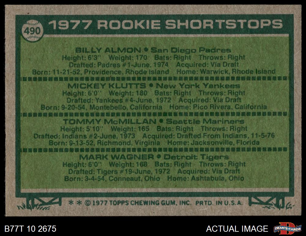 1977 Topps #490 - Billy Almon / Mickey Klutts / Tommy McMillas / Mark Wagner Rookie Shortstops 5.5 - EX+
