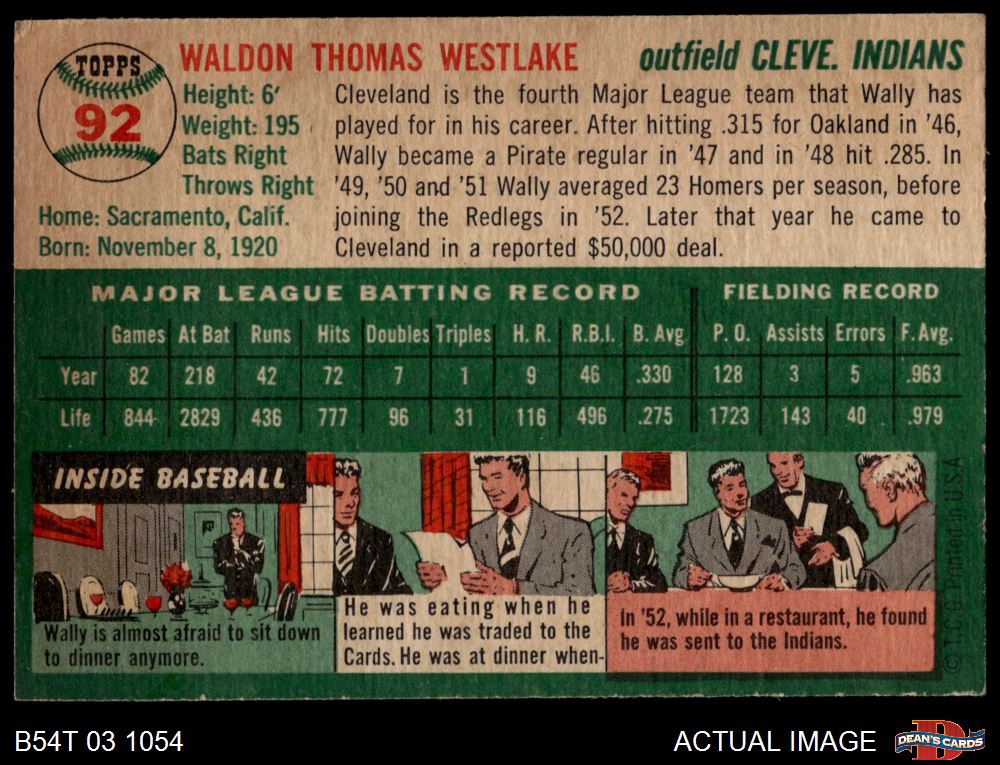 1954 Topps #92 Wally Westlake 4 - VG/EX