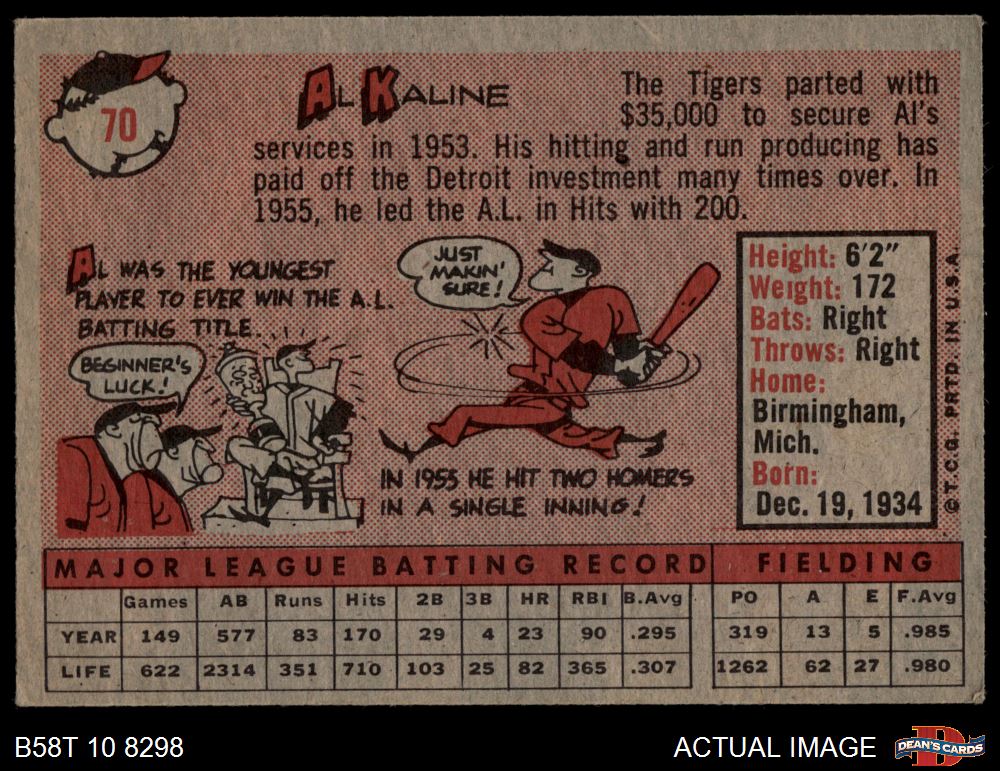 1958 Topps #70 YN Al Kaline 4 - VG/EX