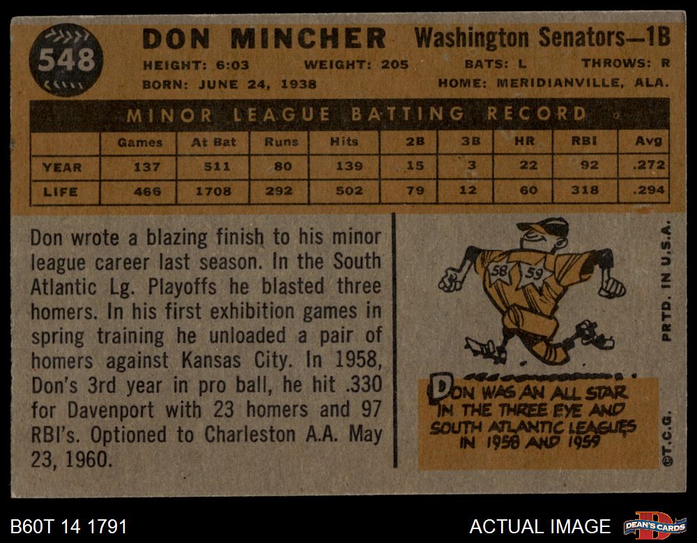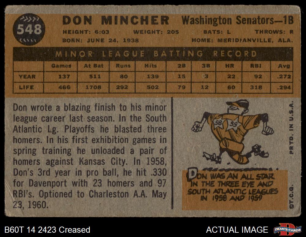 1960 Topps #548 Don Mincher 2 - GOOD
