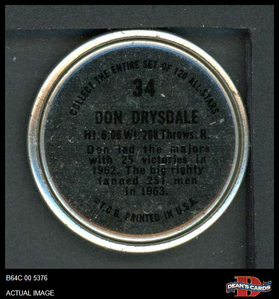 1964 Topps Coins #34 Don Drysdale 2 - GOOD