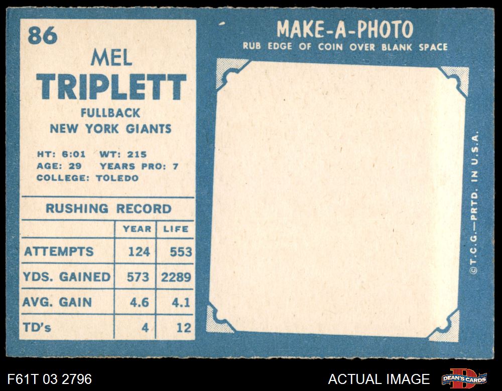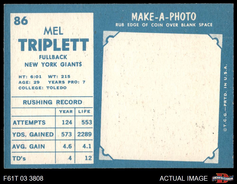 1961 Topps #86 Mel Triplett 6 - EX/MT