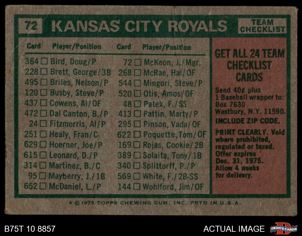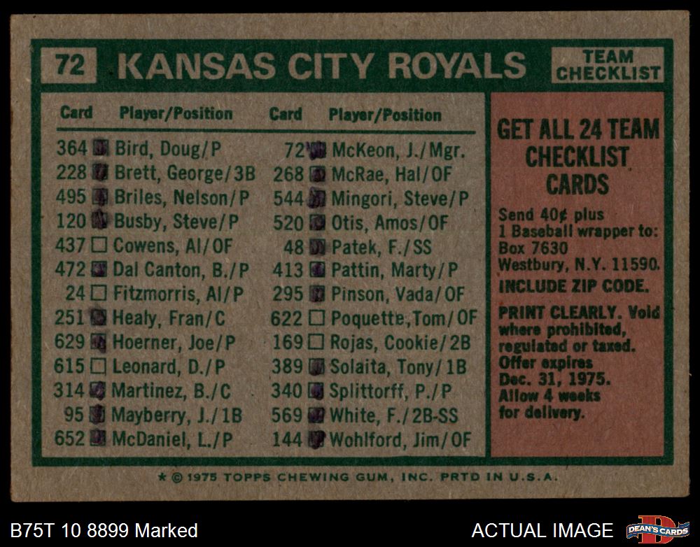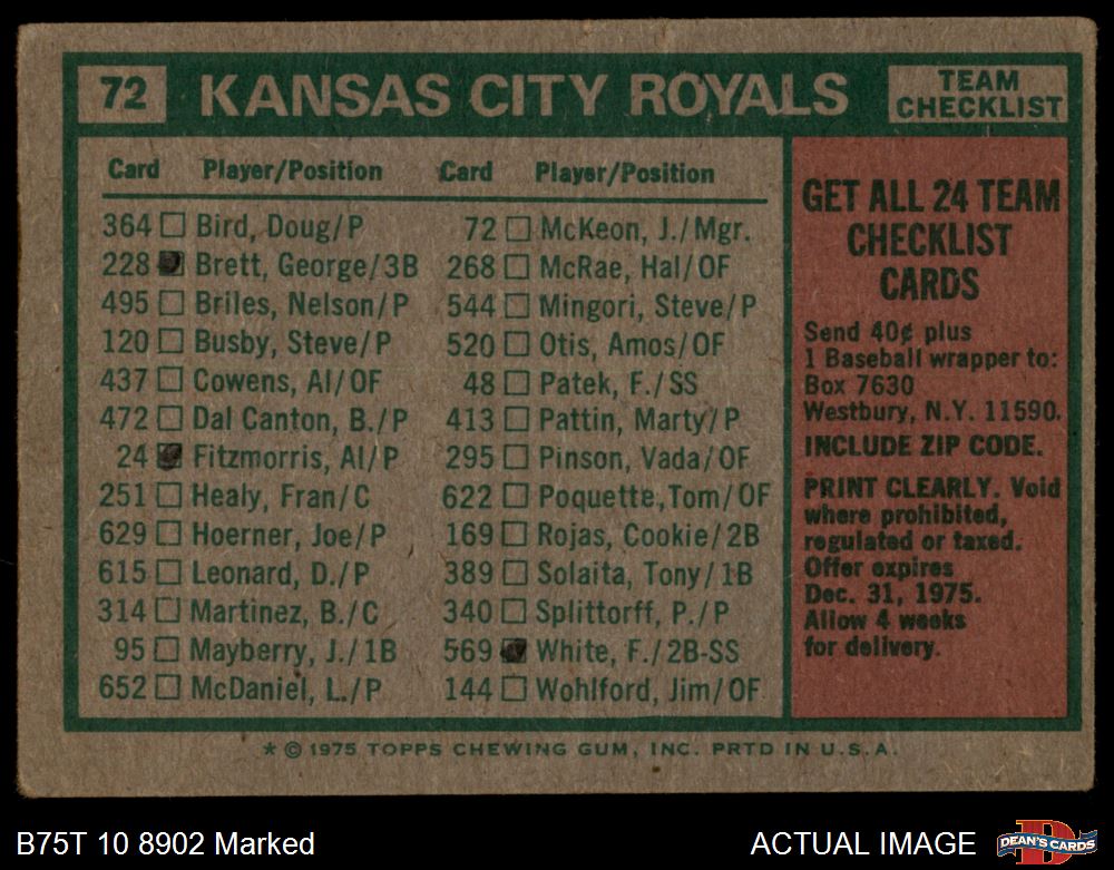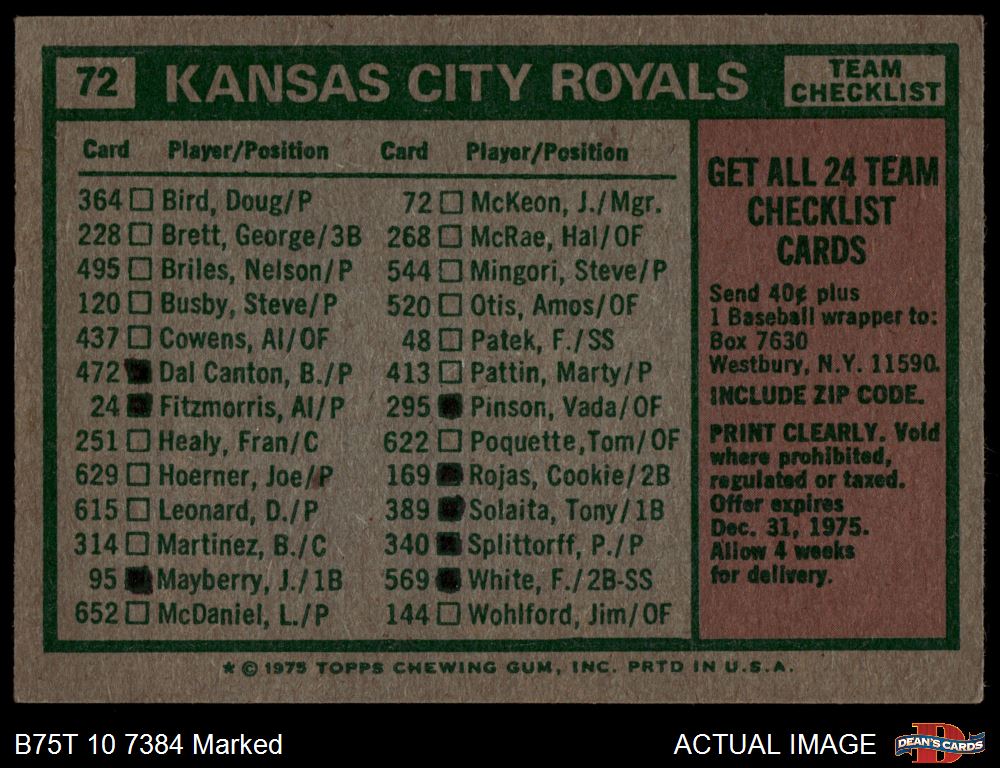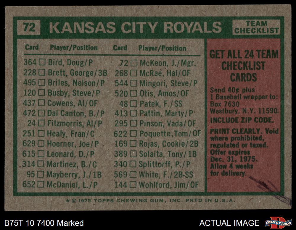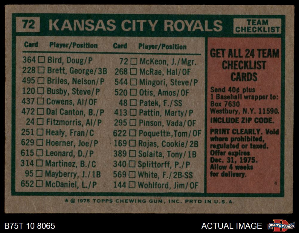 1975 Topps Baseball Cards (14,253 available)1975 Topps Royals (806 available)