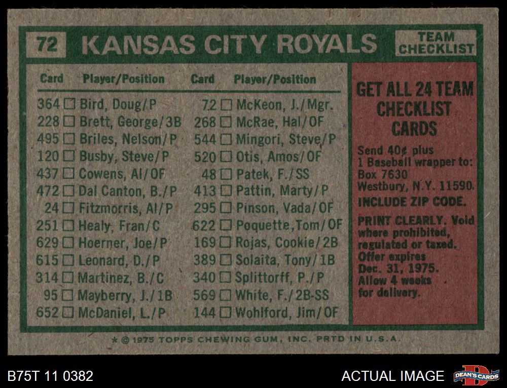 1975 Topps Baseball Cards (15,152 available)1975 Topps Royals (811 available)