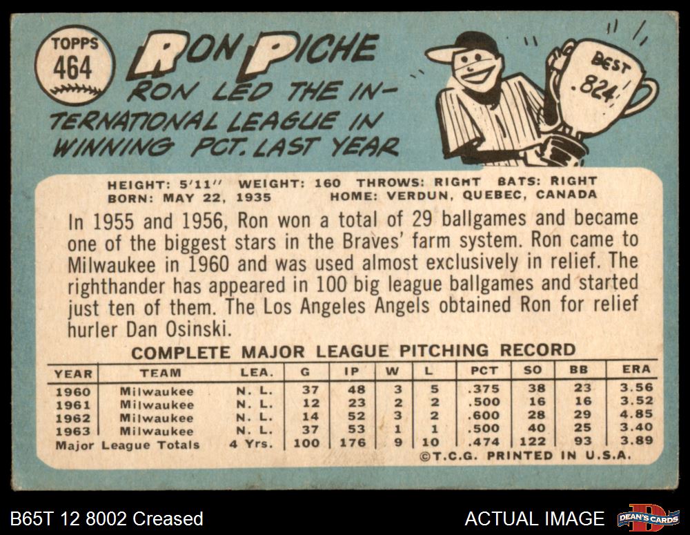 1965 Topps #464 Ron Piche 2 - GOOD