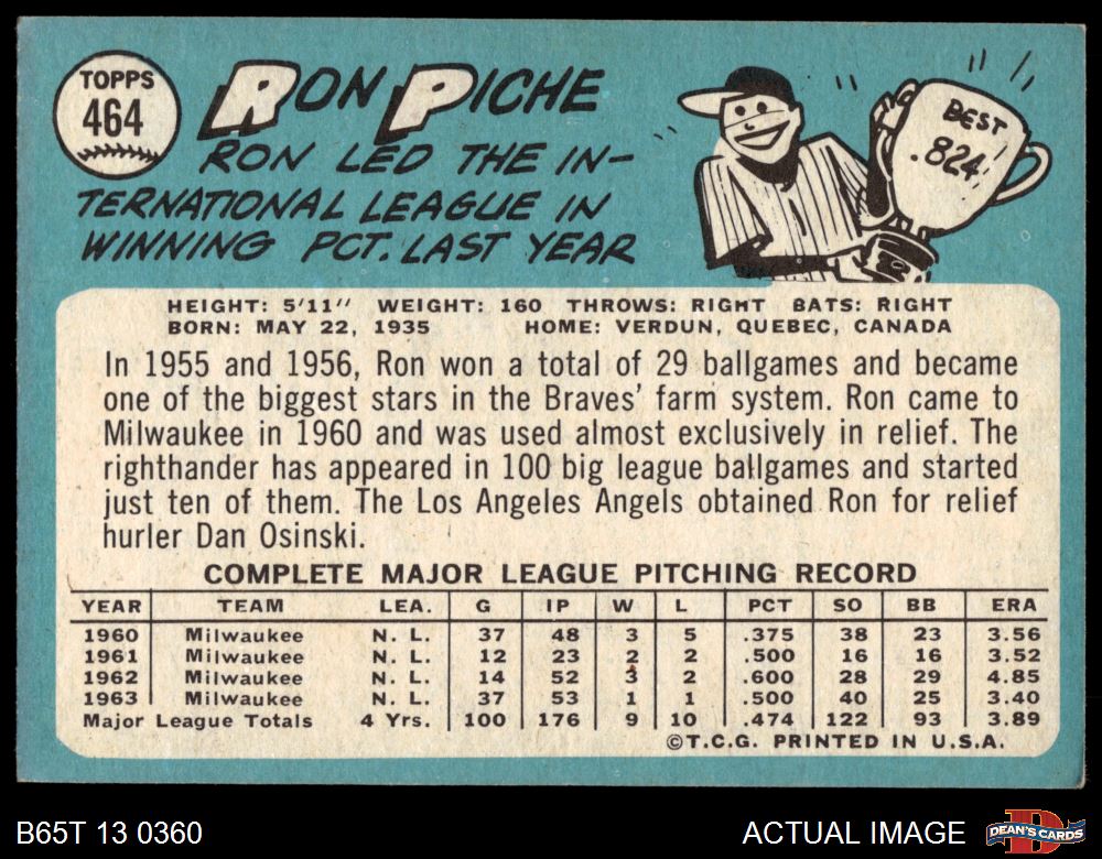 1965 Topps #464 Ron Piche 4 - VG/EX