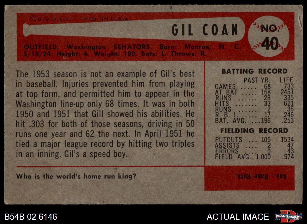1954 Bowman #40 Gil Coan 3 - VG