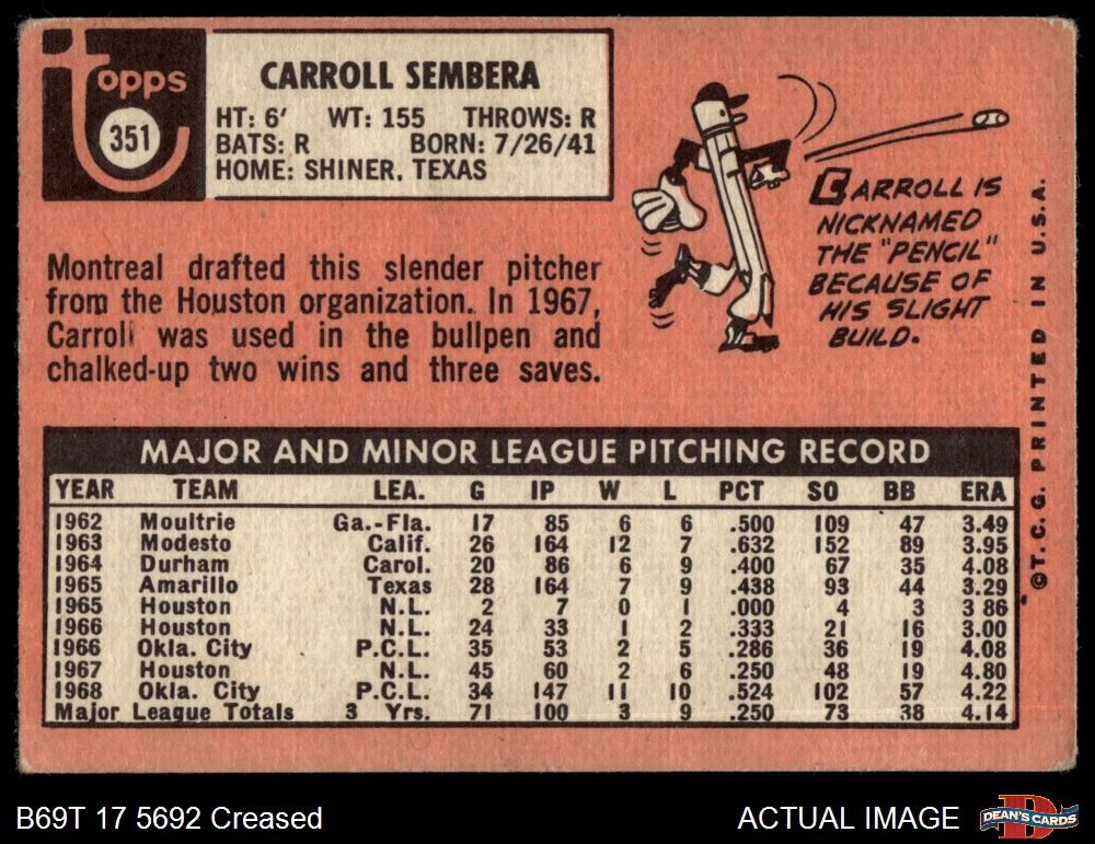 1969 Topps #351 Carroll Sembera Front Thumbnail