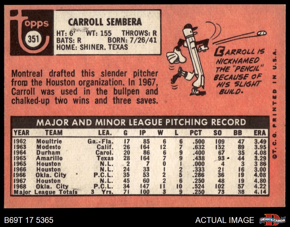1969 Topps #351 Carroll Sembera 4 - VG/EX