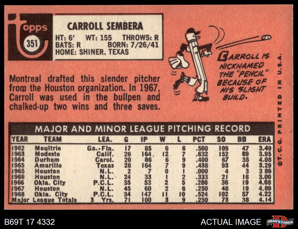 1969 Topps #351 Carroll Sembera 8.5 - NM/MT+