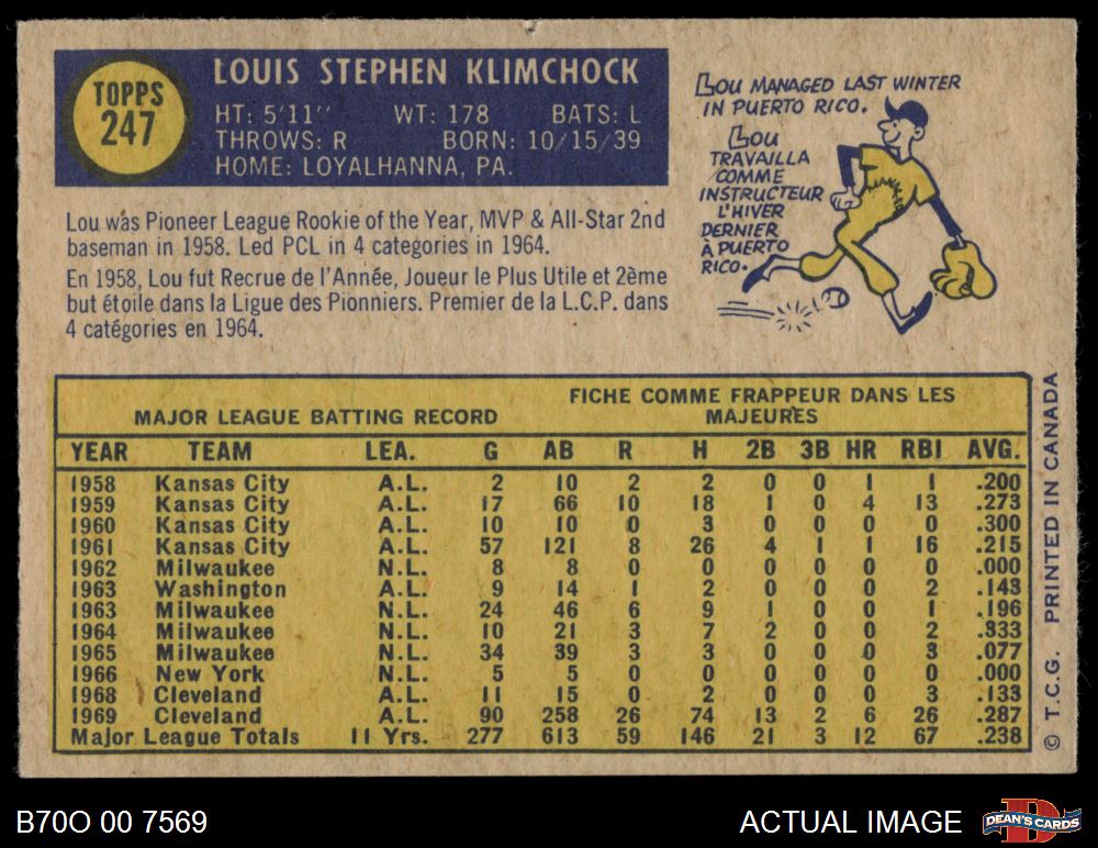 1970 O-Pee-Chee #247 Lou Klimchock 5 - EX