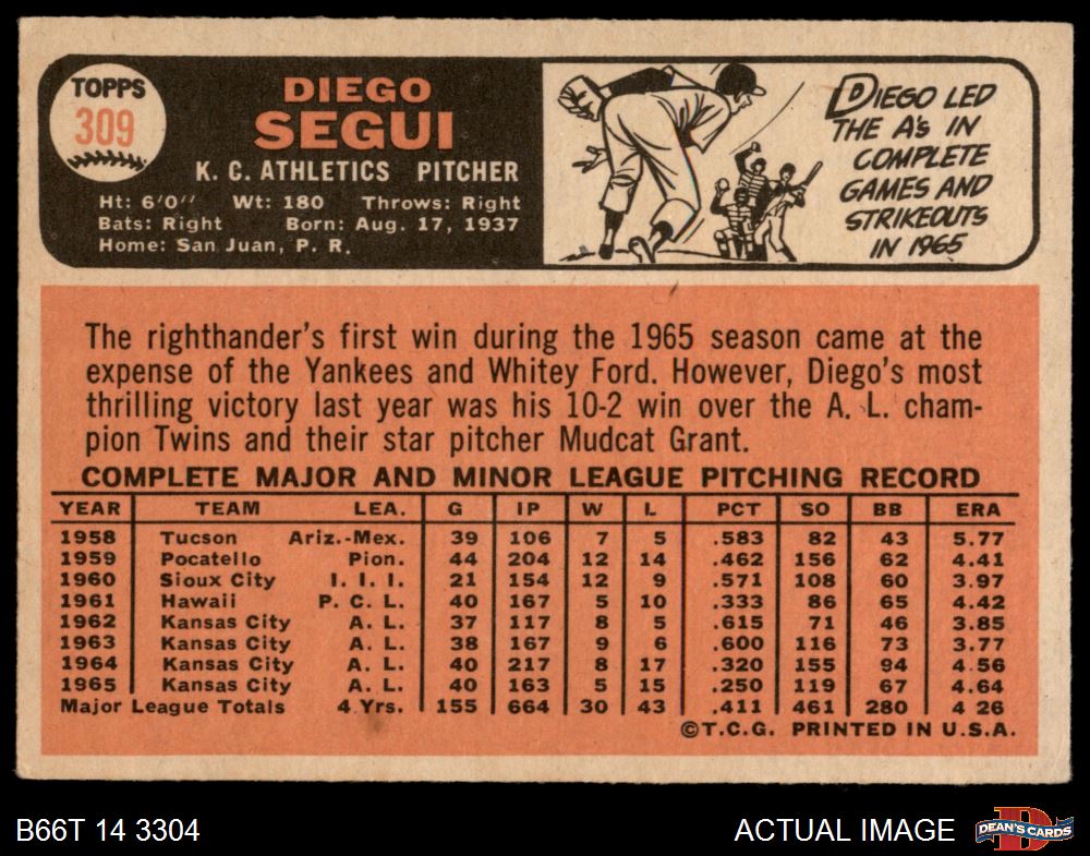 1966 Topps #309 Diego Segui 4.5 - VG/EX+