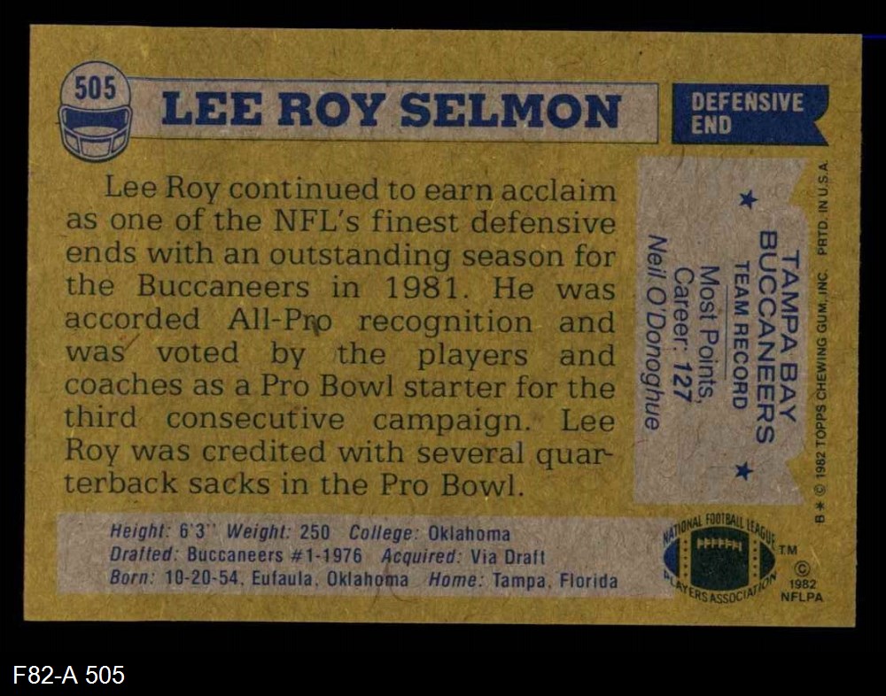 1982 Topps #505 Lee Roy Selmon
