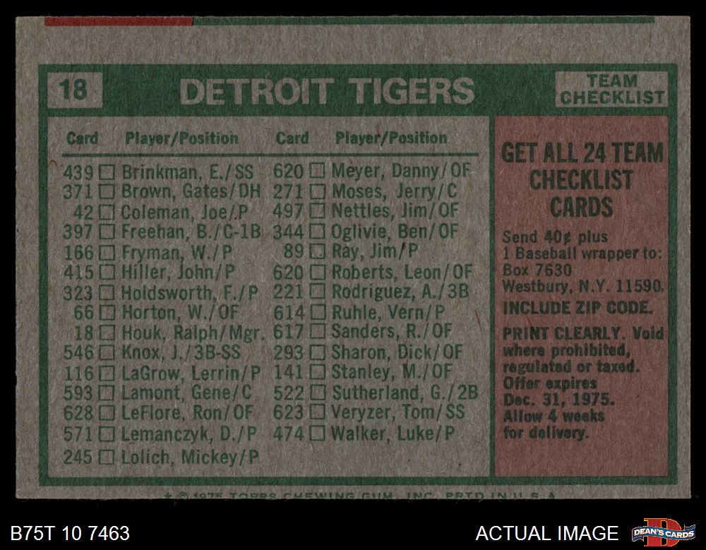 1975 Topps #18 - Ralph Houk Tigers Team Checklist 3 - VG