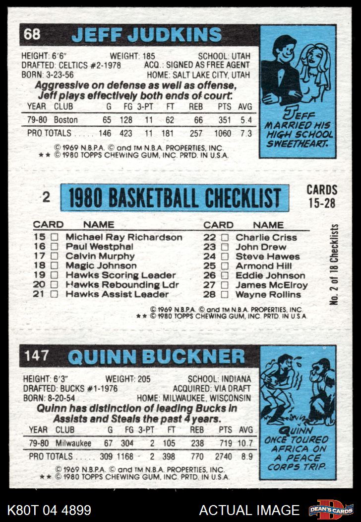 1980 Topps - Quinn Buckner / Marques Johnson / Jeff Judkins 147 / 2 / 68 7 - NM