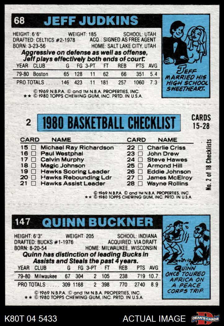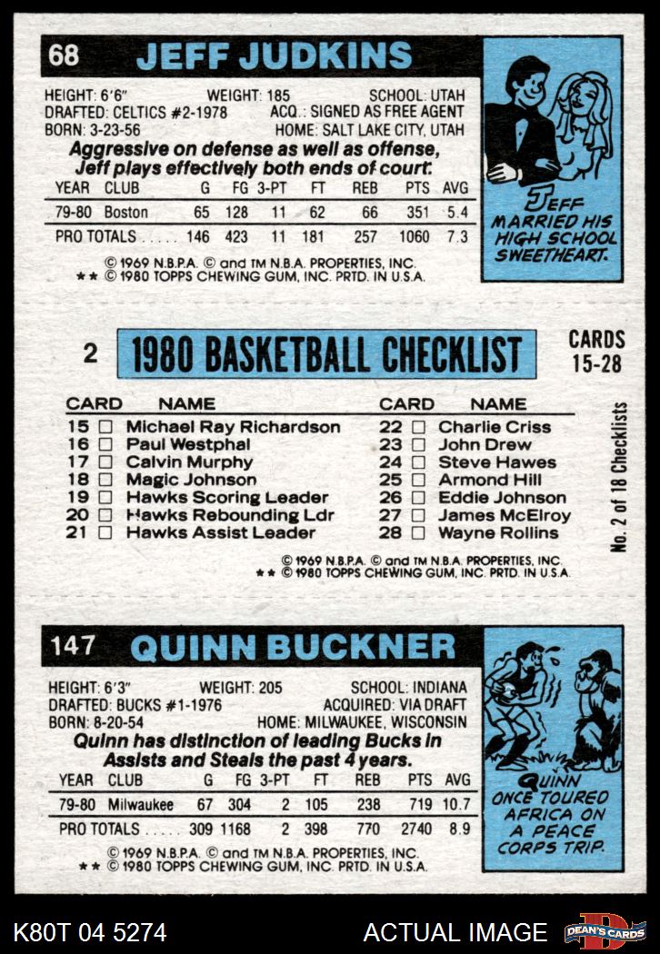1980 Topps - Quinn Buckner / Marques Johnson / Jeff Judkins 147 / 2 / 68 8 - NM/MT