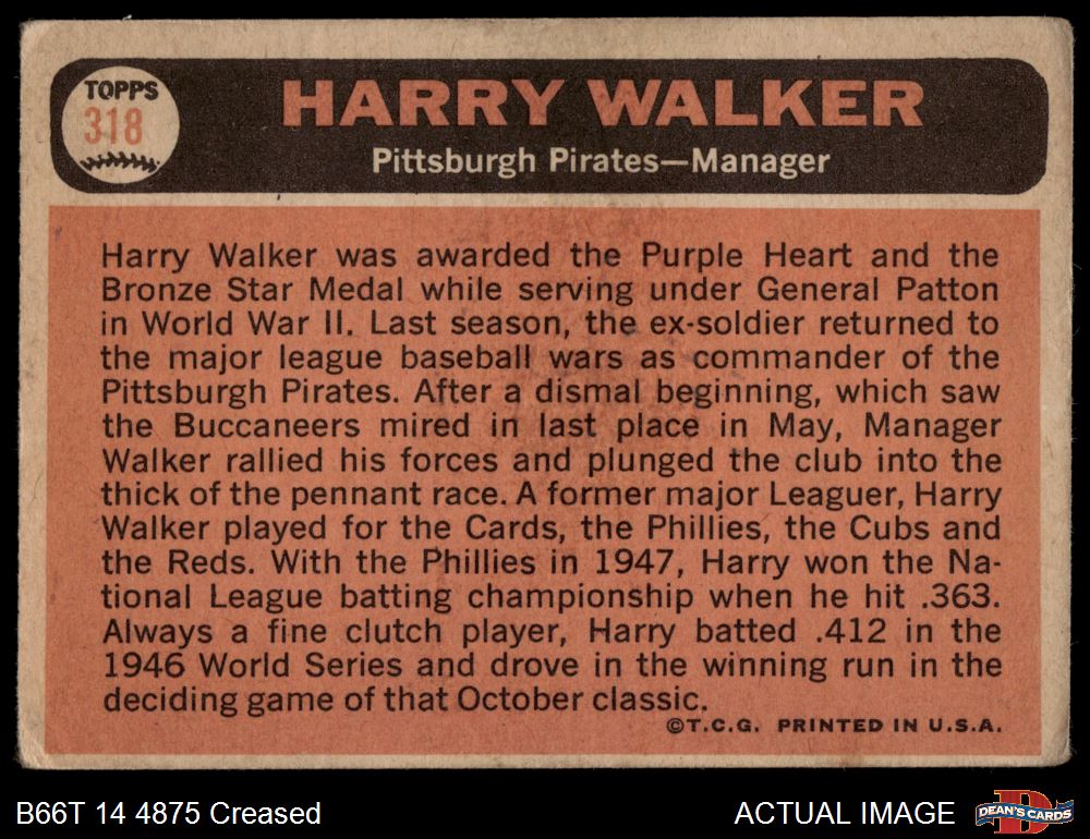 1966 Topps #318 Harry Walker Front Thumbnail