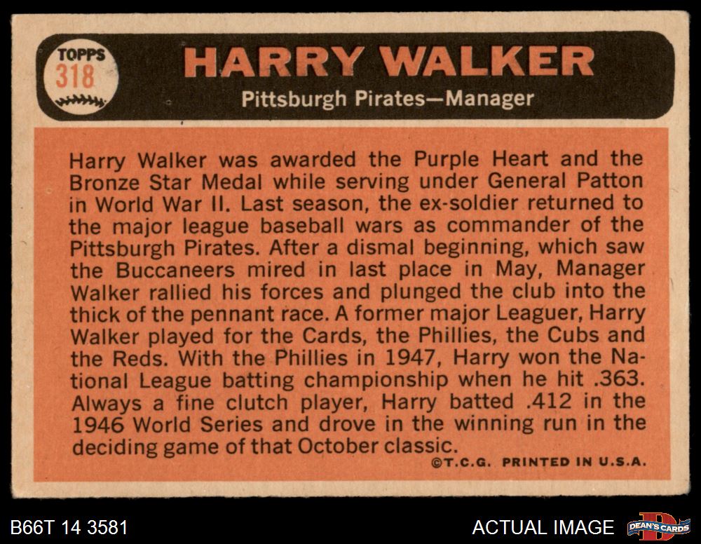 1966 Topps #318 Harry Walker 3.5 - VG+