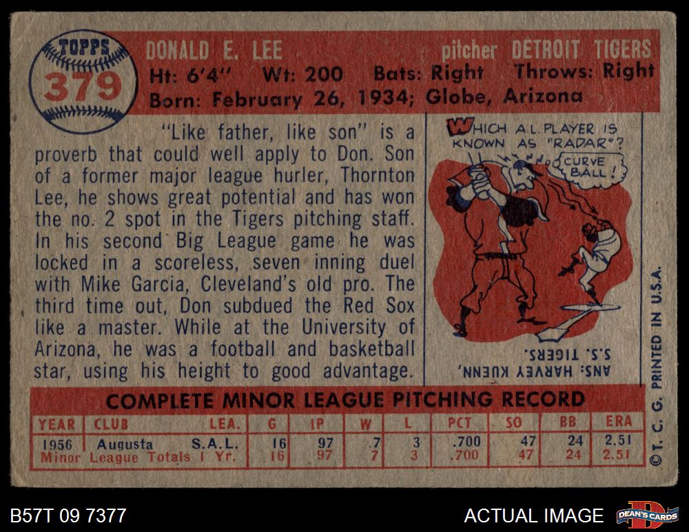 1957 Topps #379 Don Lee 2.5 - GD+