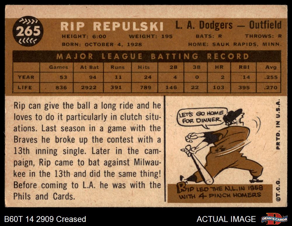 1960 Topps #265 Rip Repulski