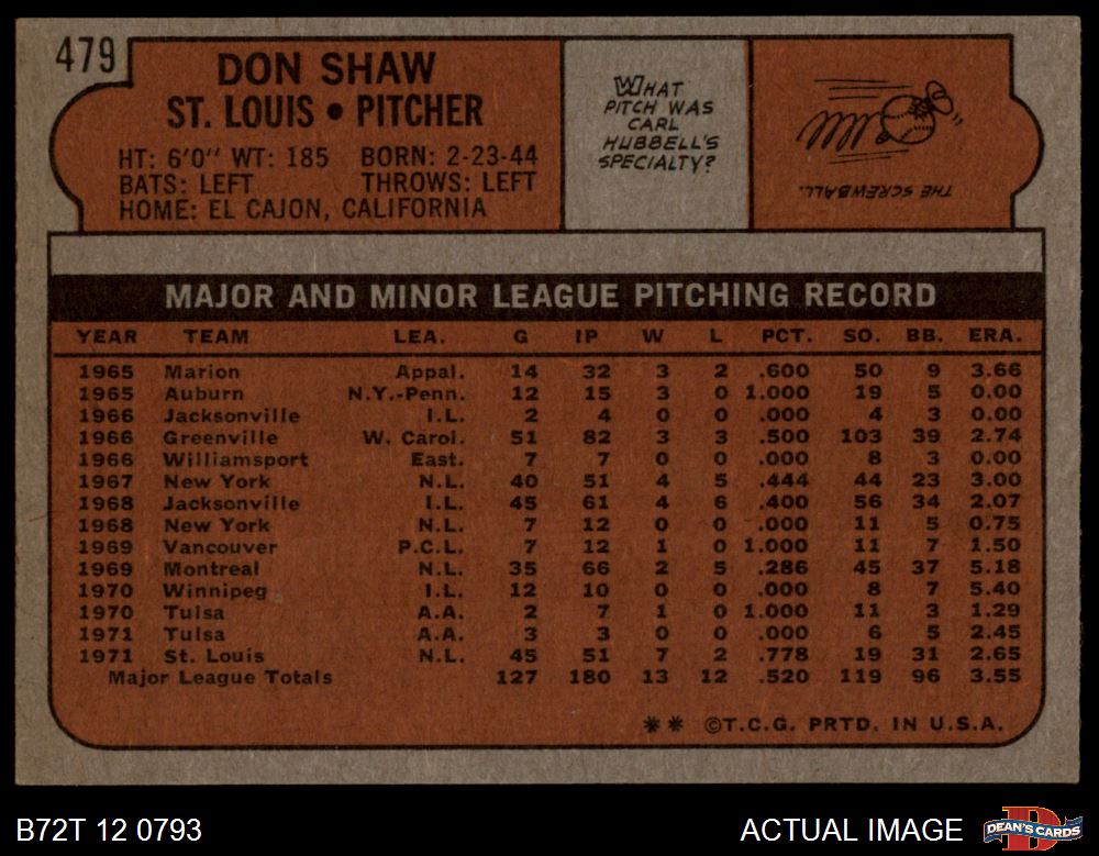 1972 Topps #479 Don Shaw 6 - EX/MT