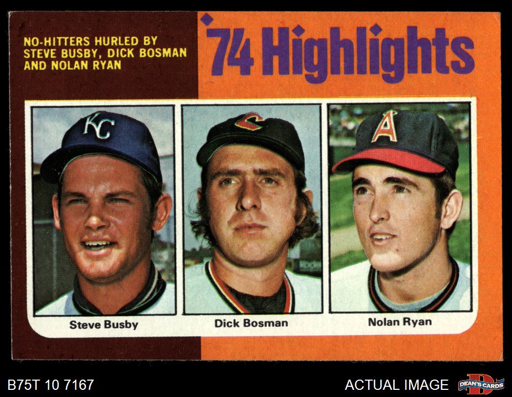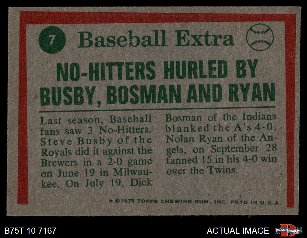 1975 Topps #7 - Nolan Ryan / Steve Busby / Dick Bosman No-Hitters Hurled 4 - VG/EX