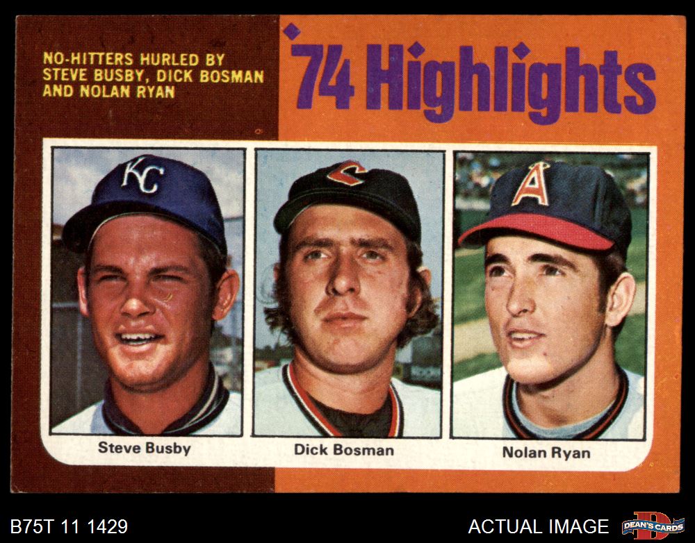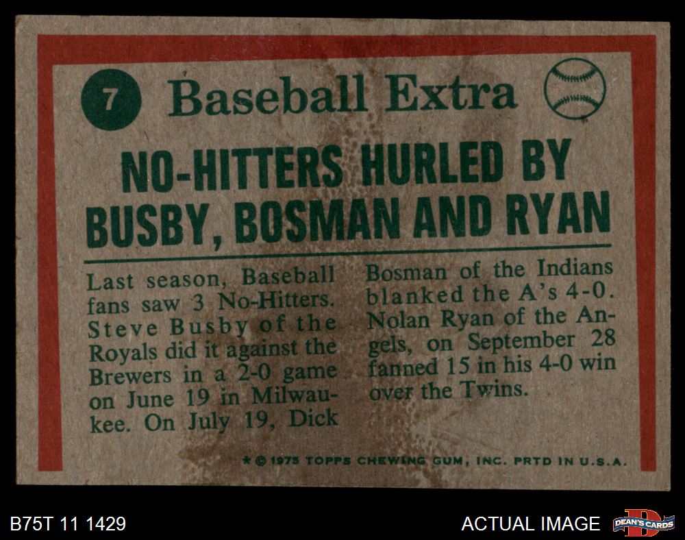 1975 Topps #7 - Nolan Ryan / Steve Busby / Dick Bosman No-Hitters Hurled 4.5 - VG/EX+