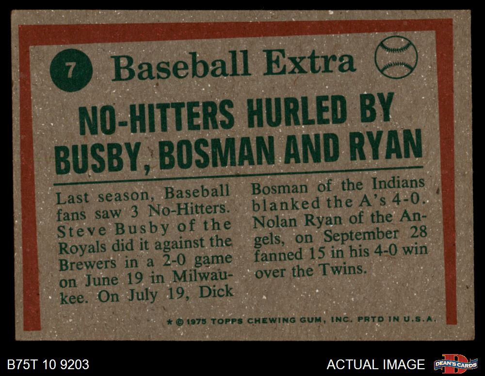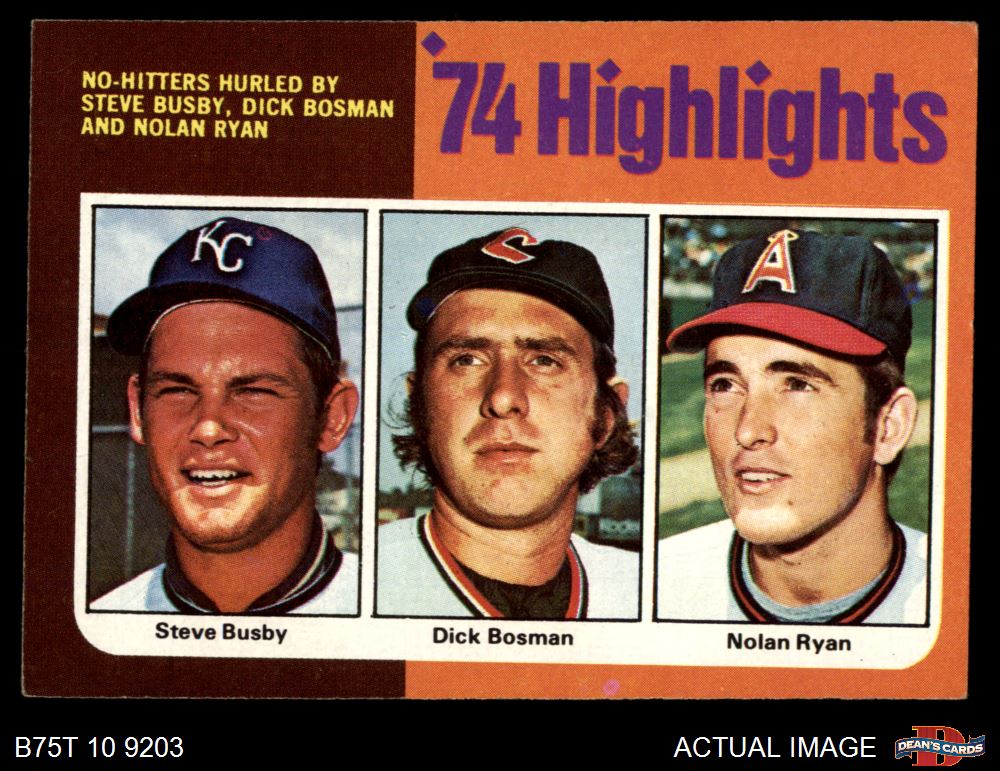 1975 Topps #7 - Nolan Ryan / Steve Busby / Dick Bosman No-Hitters Hurled 5 - EX