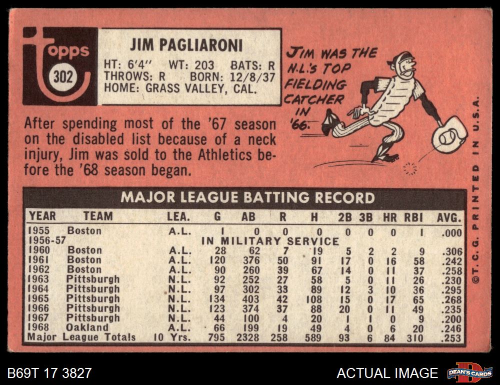 1969 Topps #302 Jim Pagliaroni 3 - VG