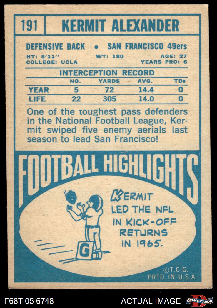 1968 Topps #191 Kermit Alexander 4 - VG/EX