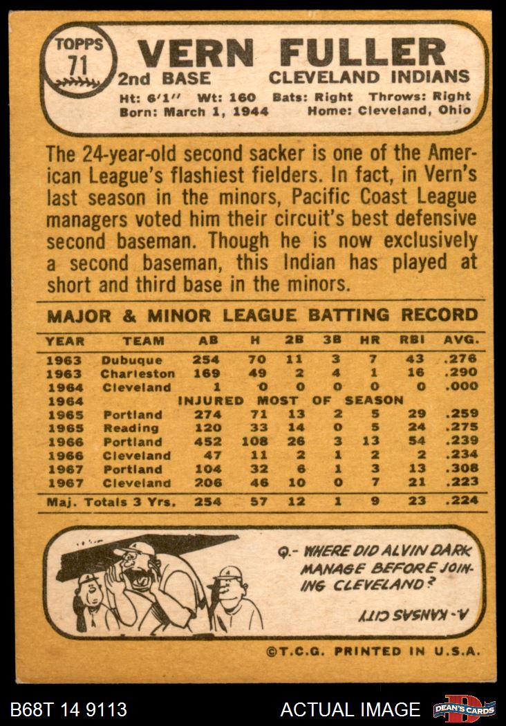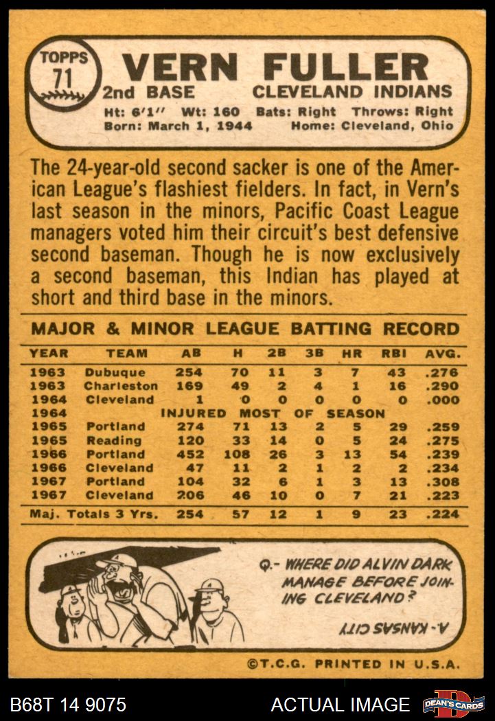 1968 Topps #71 Vern Fuller 4 - VG/EX