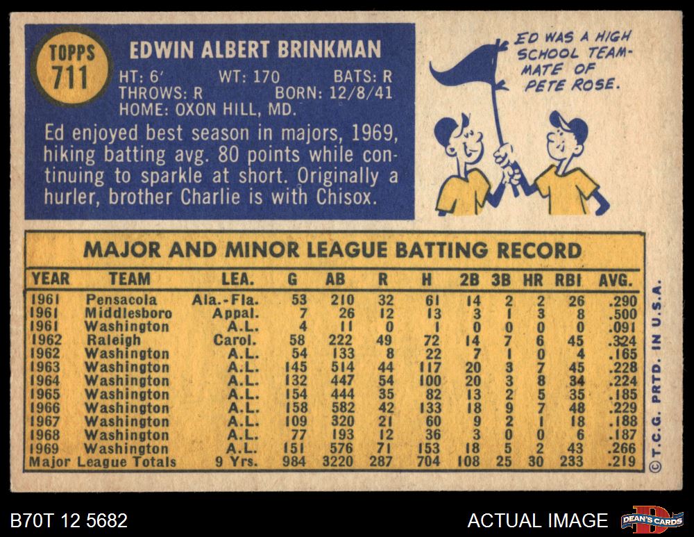 1970 Topps #711 Ed Brinkman 5 - EX
