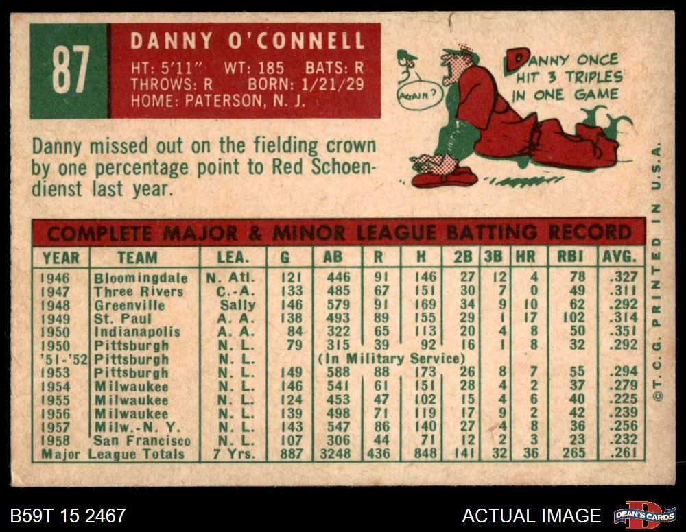 1959 Topps #87 Danny O'Connell 4.5 - VG/EX+
