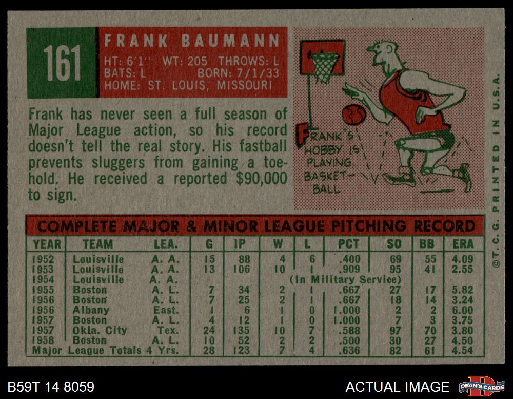 1959 Topps #161 Frank Baumann 6 - EX/MT