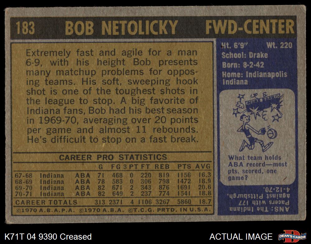 1971 Topps #183 Bob Netolicky