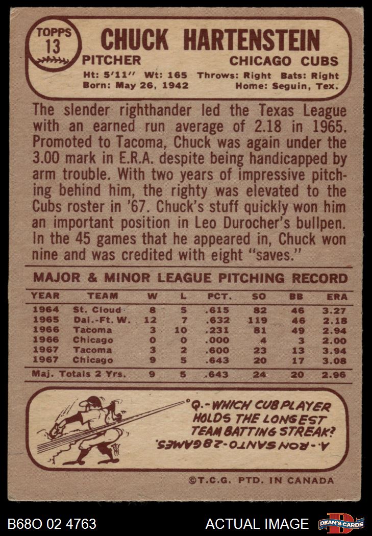 1968 O-Pee-Chee #13 Chuck Hartenstein 4 - VG/EX