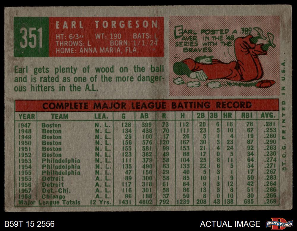 1959 Topps #351 Earl Torgeson 1.5 - FAIR