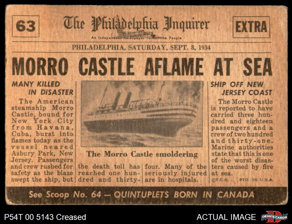 1954 Topps Scoop #63 xCOA Morro Castle Burns
