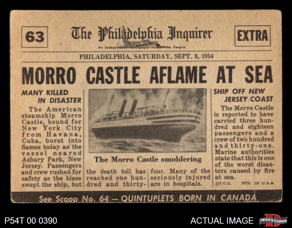 1954 Topps Scoop #63 xCOA  Morro Castle Burns Front Thumbnail