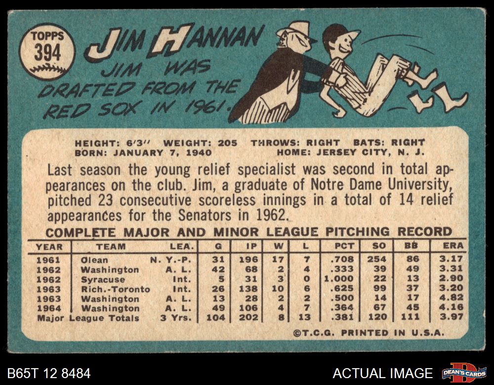 1965 Topps #394 Jim Hannan 3.5 - VG+