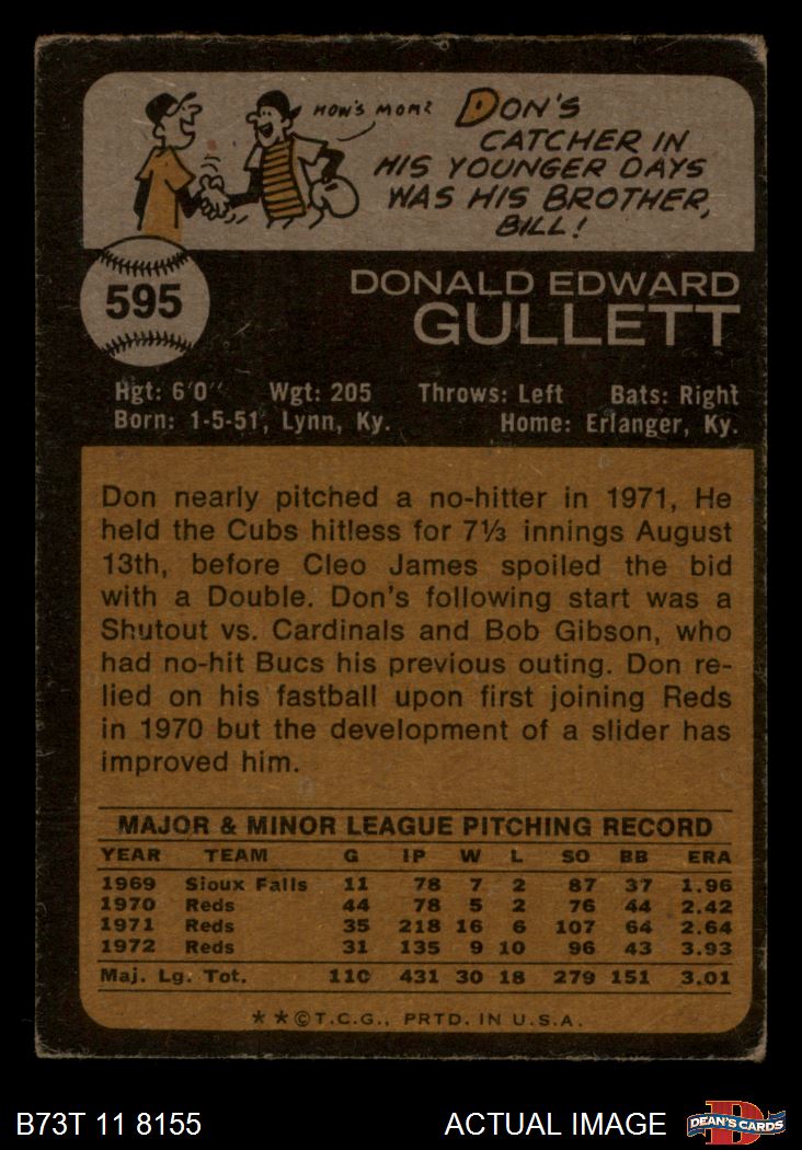 1973 Topps #595 Don Gullett