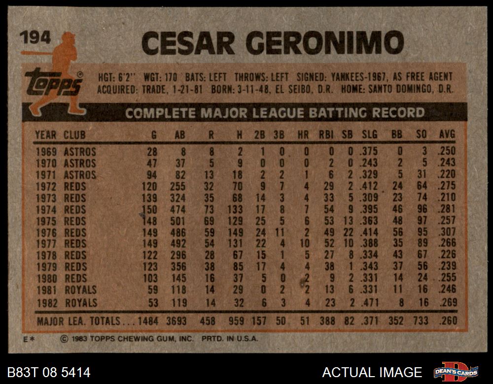 1983 Topps #194 Cesar Geronimo