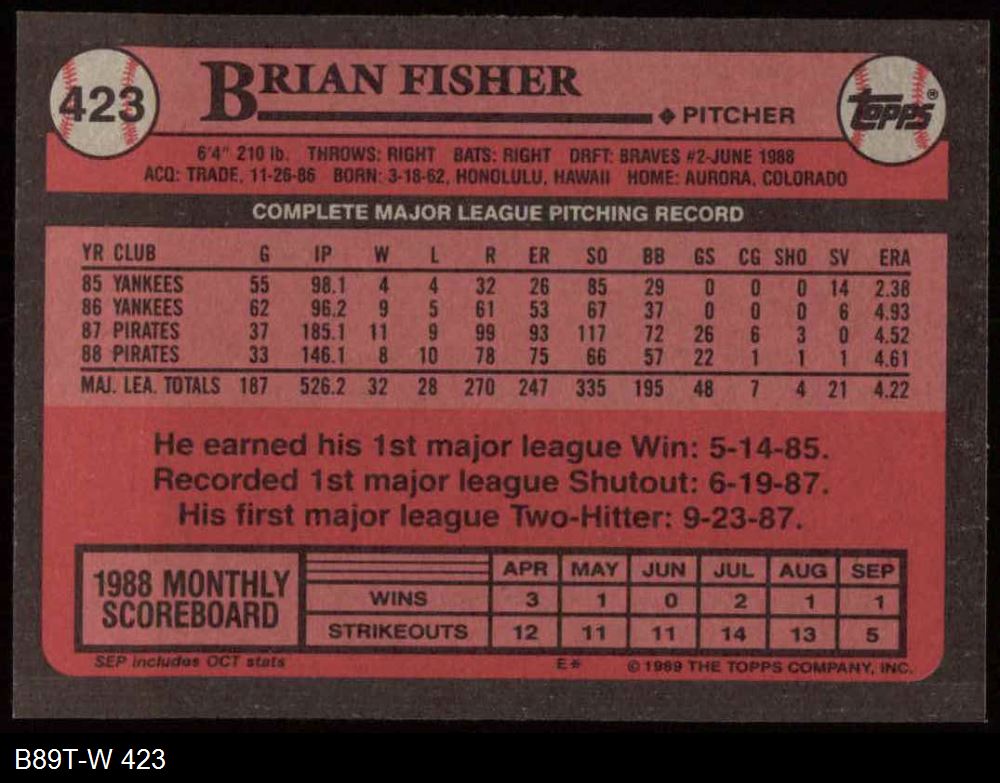 1989 Topps #423 Brian Fisher