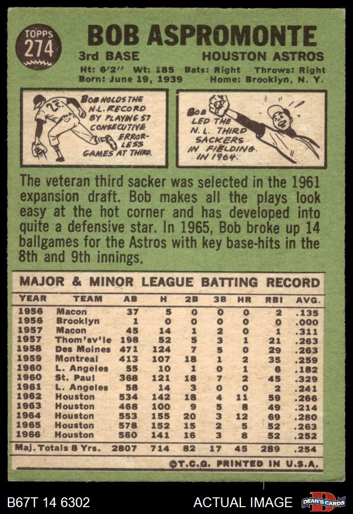 1967 Topps #274 Bob Aspromonte 4 - VG/EX